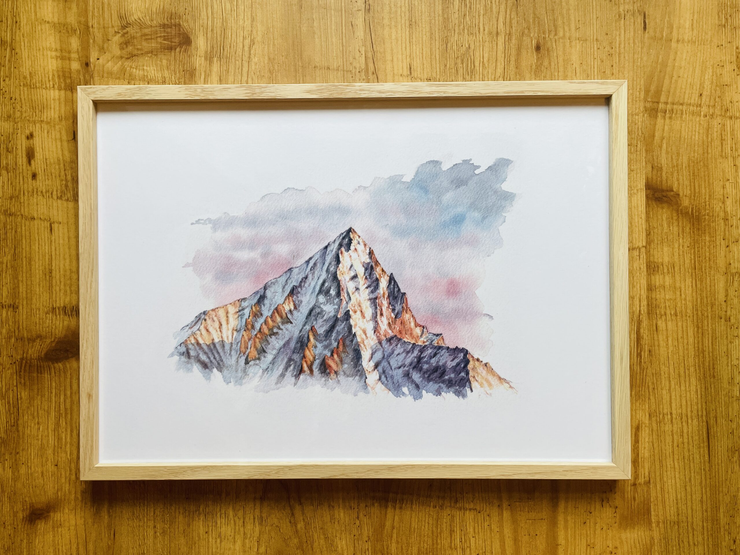 Der wunderschöne Walliser Bietschhorn von Süden – gemalt als Aquarell. Professionell gedruckt auf eines der edelsten Museumspapiere (Baryta) des deutschen Premium-Papierherstellers Hahnemühle im Format Din A3.